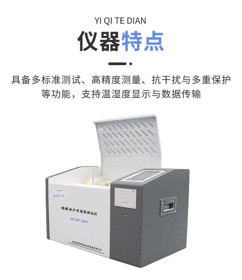 变压器绝缘油介电强度测试仪是我公司全体科研技术人员,依据绝缘油测试的有关标准及规定,发挥自身优势,经过多次现场试验和长期不懈努力,精心研制开发的高准确度、全数字化工业仪器。该机操作简便,造型美观大方。由于采用了全自动数字化微机控制,所以测量精度高、抗干扰能力强、安全可靠。
